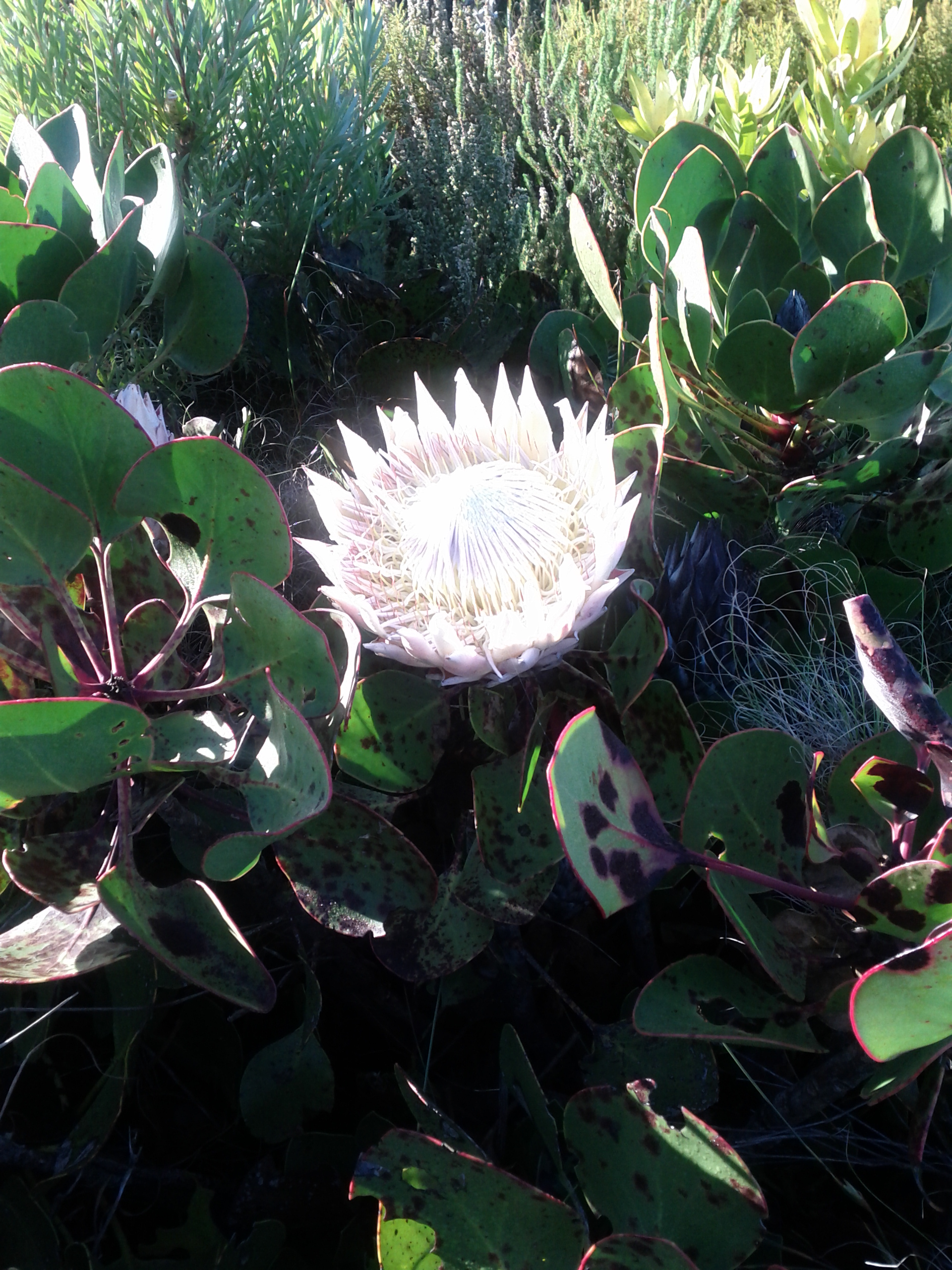 This is our Thursday hiking group. Yes, Jill and Dana are hiking. We have been twice now. Last Thursday the hike was about 7 km, some of it up rocky mountainside. Yikes! The views on the way up and down are amazing, through many varieties of protea including King Protea pictured here.