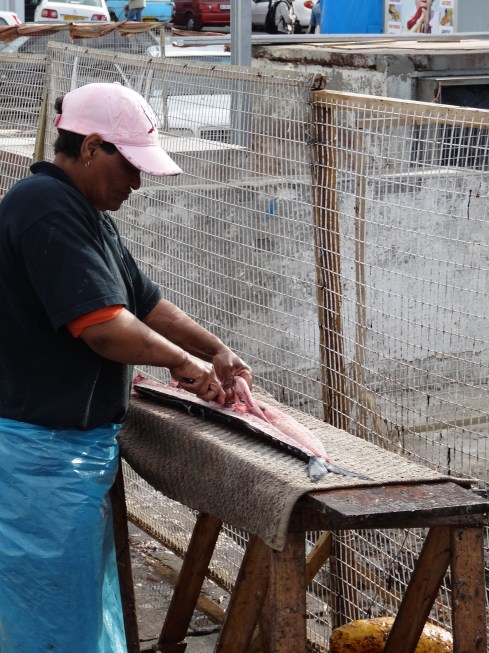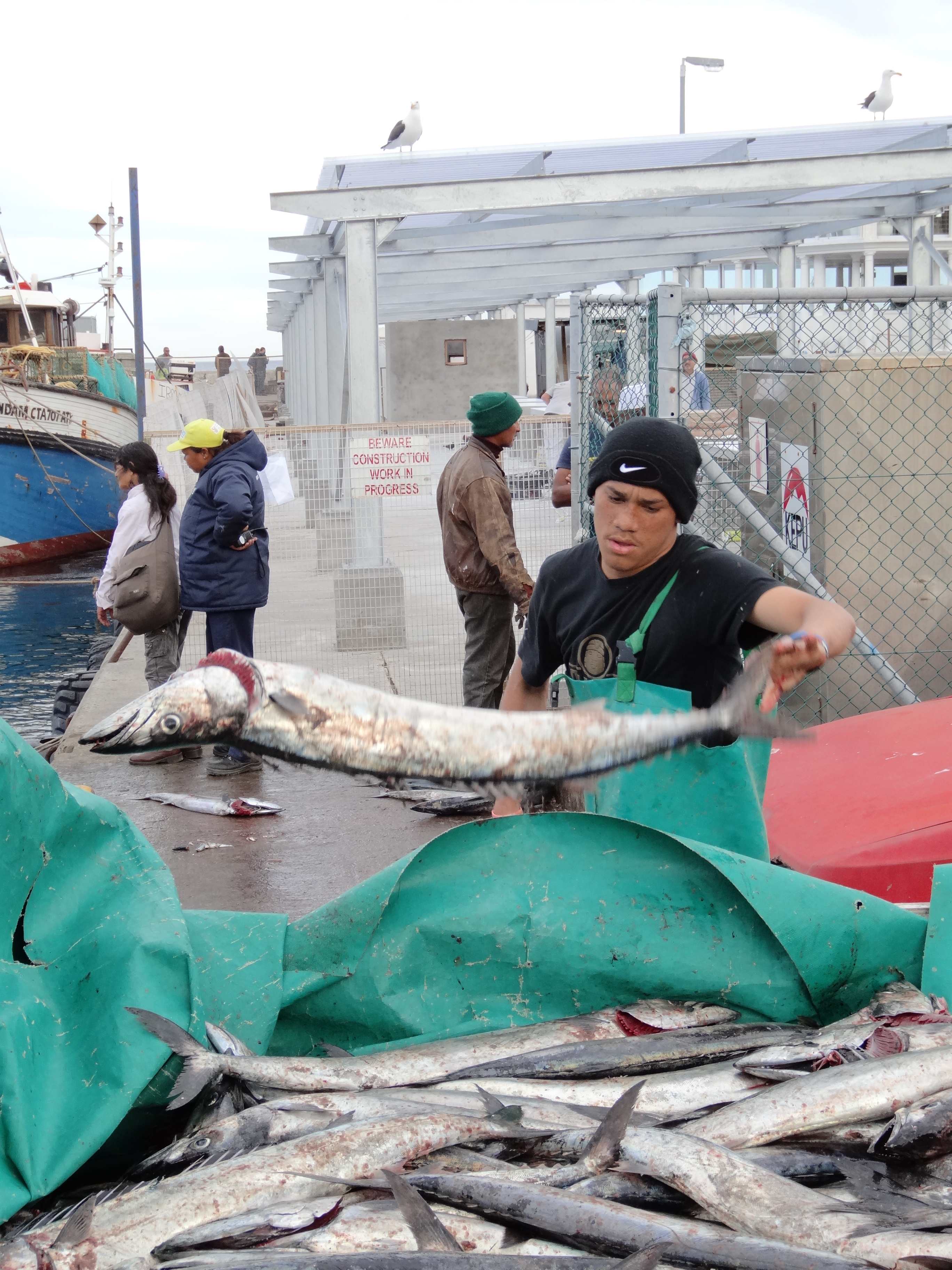 We watched the fisherman carry whole fish around to restaurants on the dock and load it into pick-ups.  Some of the fish are filleted right there.