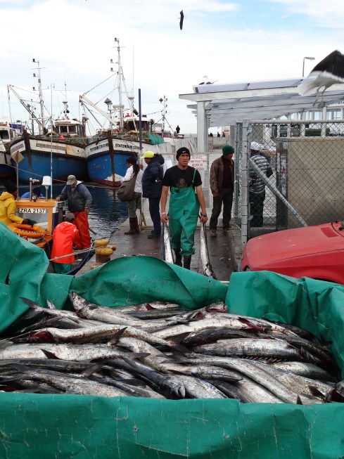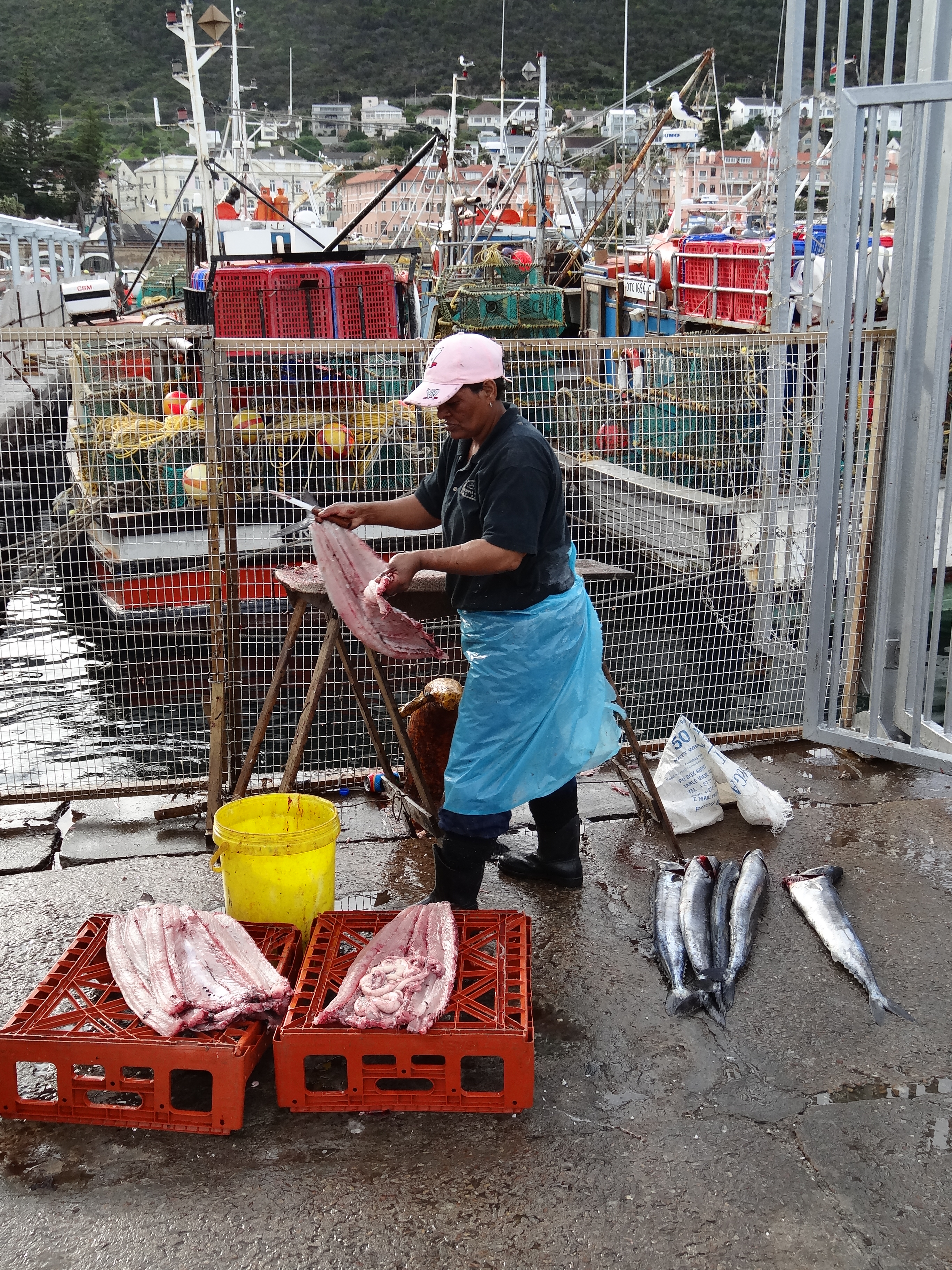 The village right up the road from ours is called Kalk Bay.  It is, primarily, a fishing village.  Each morning the boats go out. Each evening they return with the day’s catch. Dana and I went down to the docks to watch the boats come in and unload.