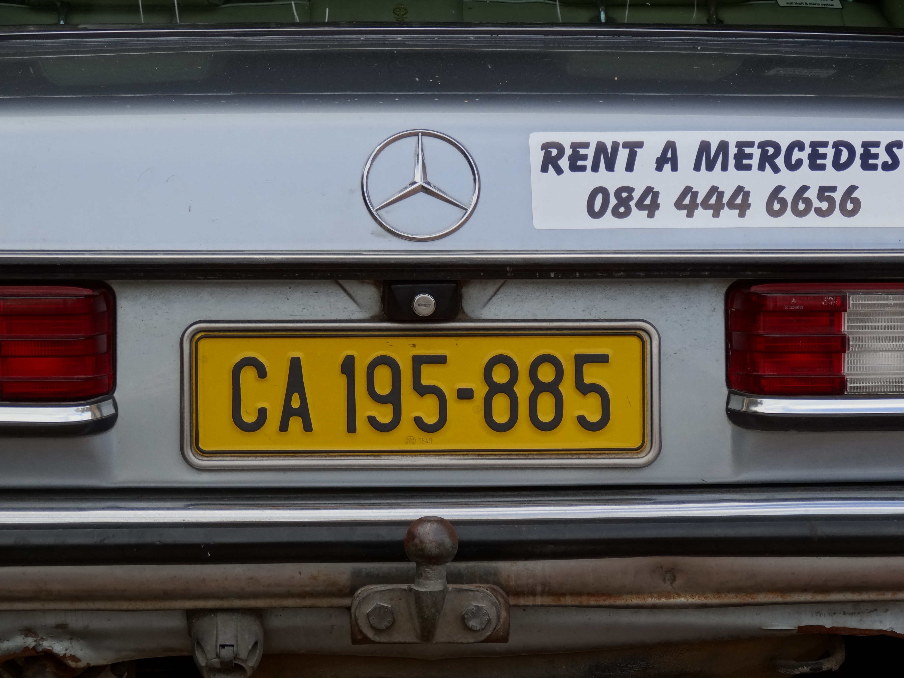 Our rental car in South Africa has been an 80s Mercedes. We rented from the Acker Brothers, Nick and George, (see their picture in the “South Africans” post) who specialize in old Mercedes. It took us a while to get used to the squeaks, rattles and quirks but we found the car’s size reassuring. It was a marked safety contrast to our Sicilian Smart Car.