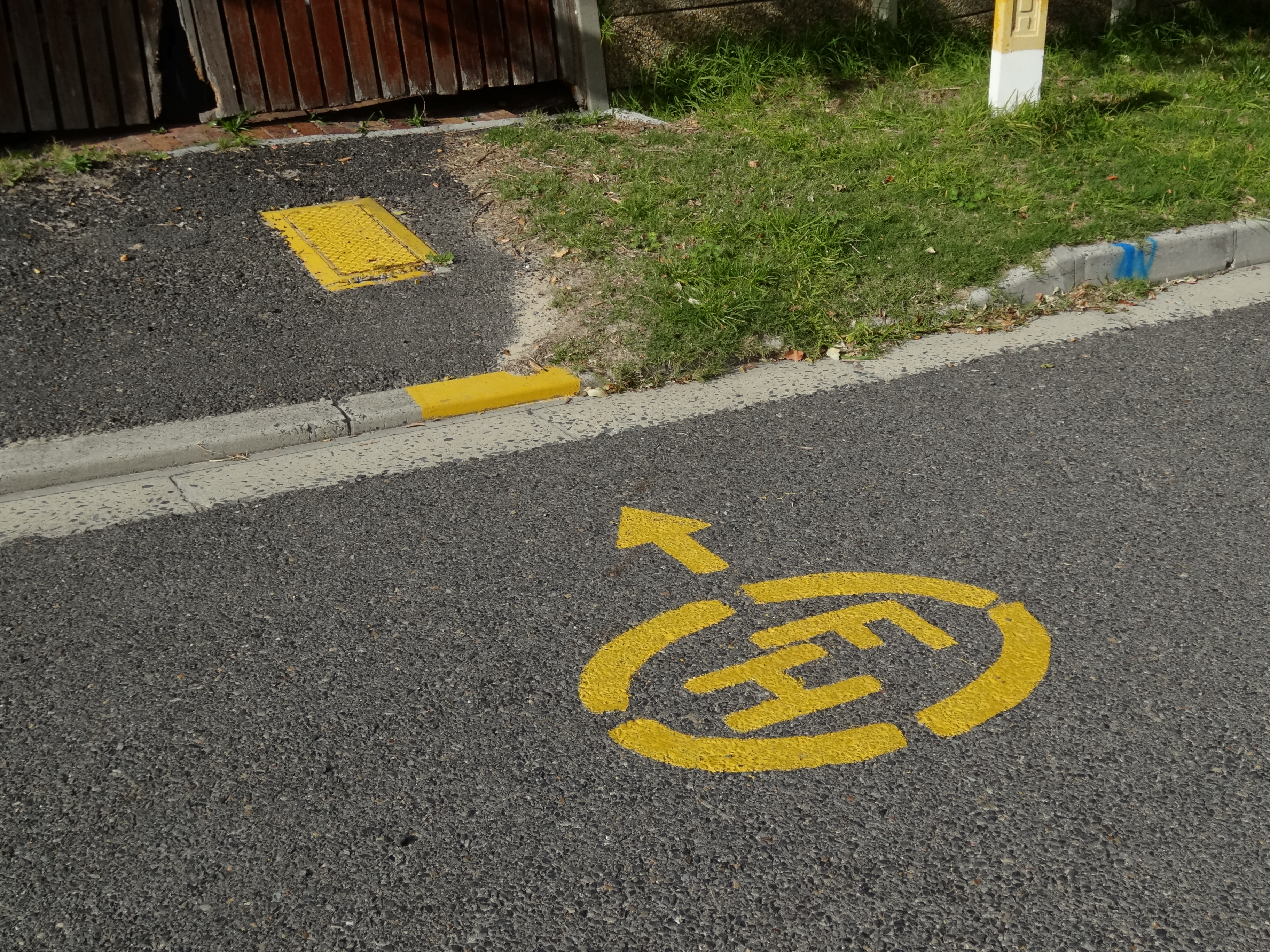 Another on-pavement message which stands, we think, for “Fire Hydrant.” Our friend Obie suggested it might mean “Find Help” when seeing a baboon in the road.