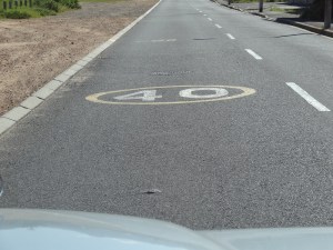 Speed limits are frequently painted directly on the pavement here, a very good idea.