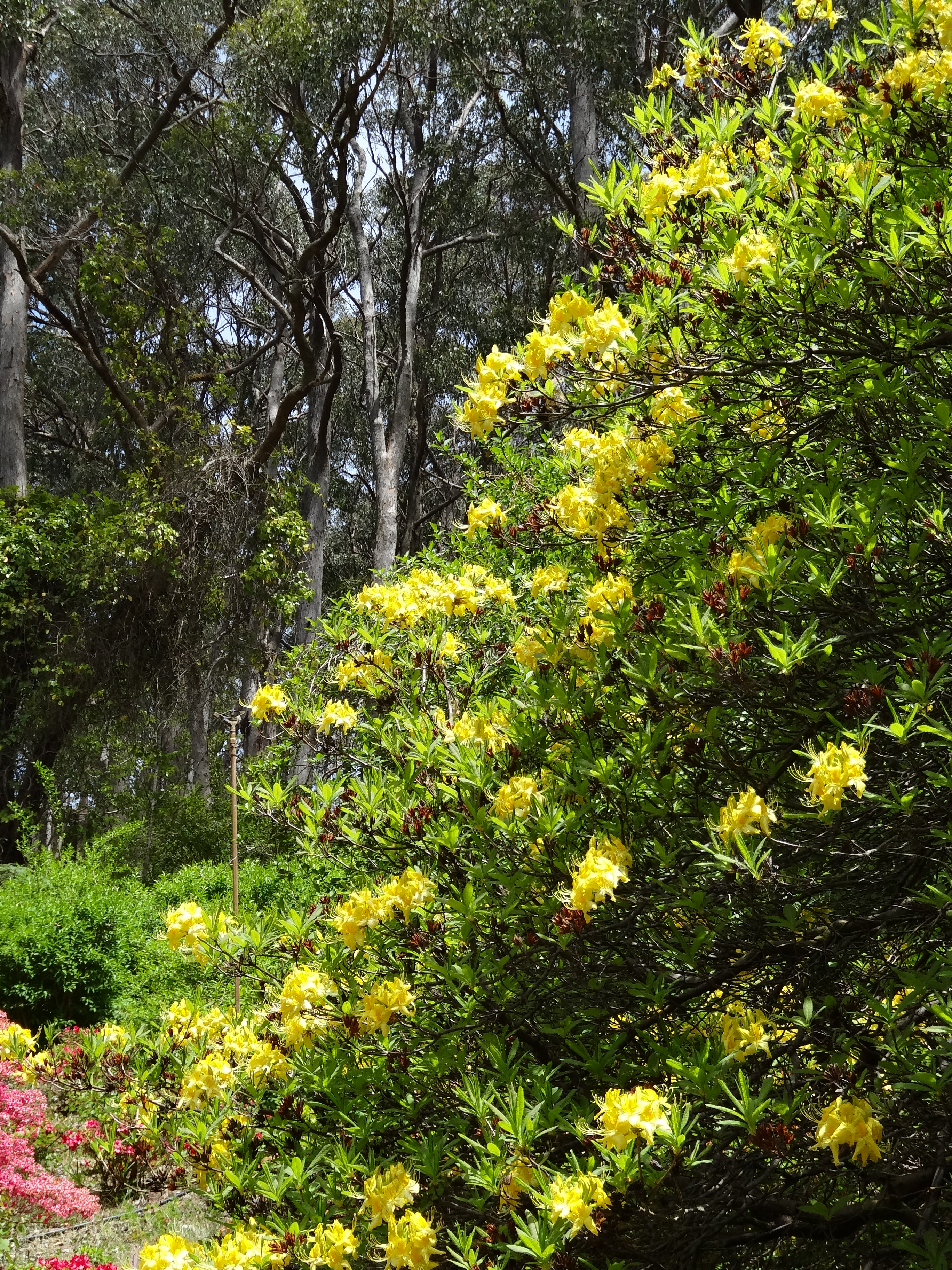 When we went to Mount Lofty we found a hidden delight–the Mount Lofty Botanic Garden. And within the garden we found and hiked through the Rhododendron Gully. Glorious.