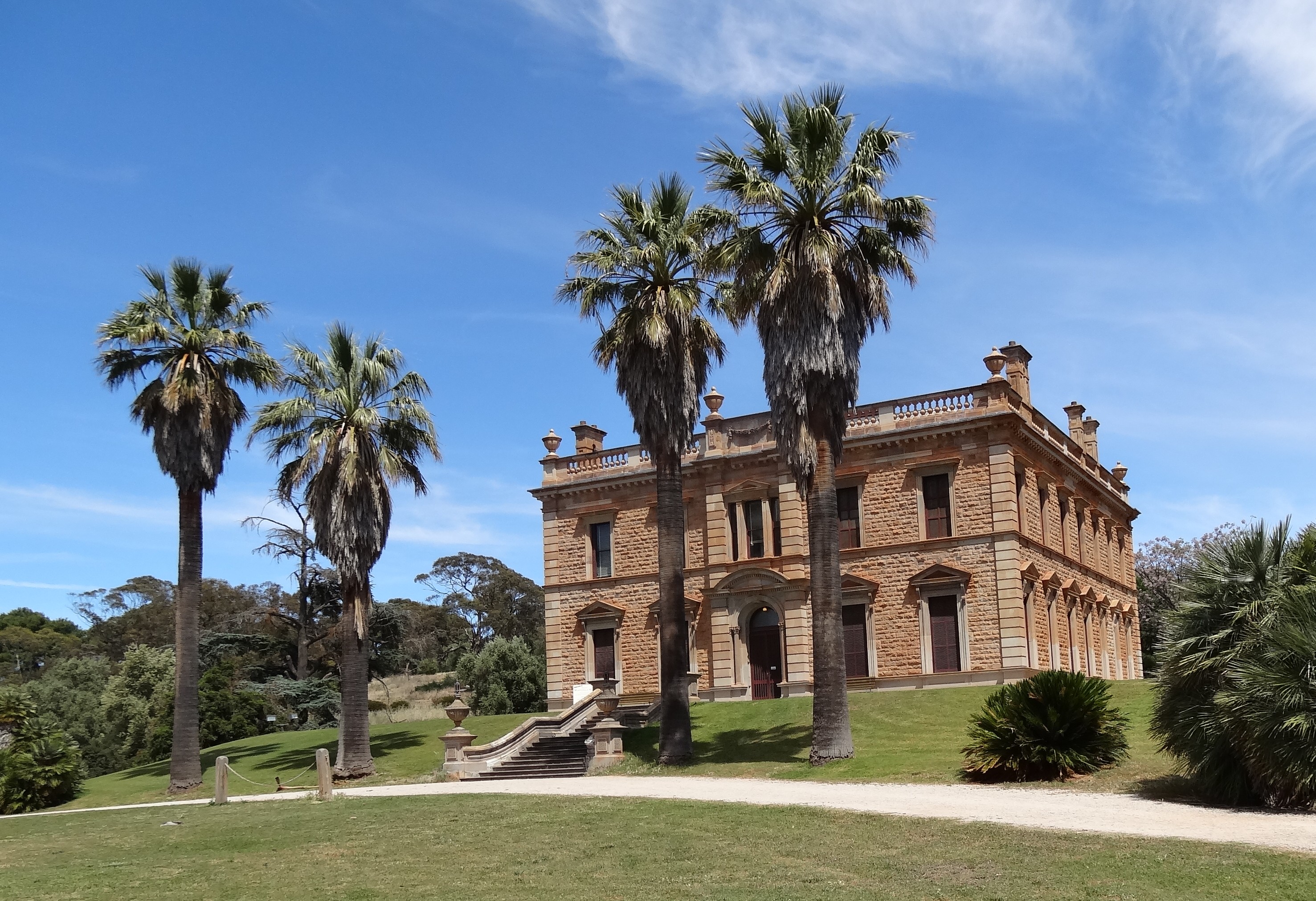It looks like a stately mansion that we saw on our travels up the Hudson River in NY. The only dead giveaway are the palm trees in front of the house. Were you able to go inside? Did it have original furnishings of that era?