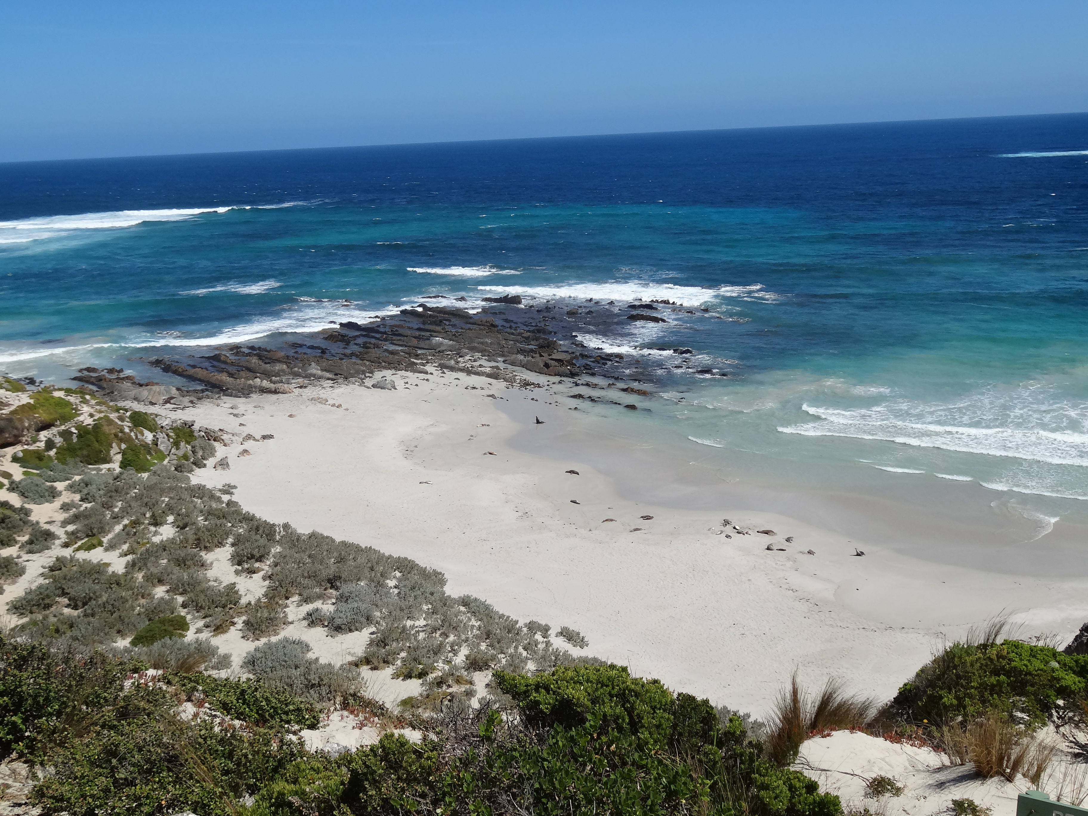 See those minuscule specks on the beach in this photo. They are Australian sea-lions sleeping on the beach at Seal Bay on Kangaroo Island.