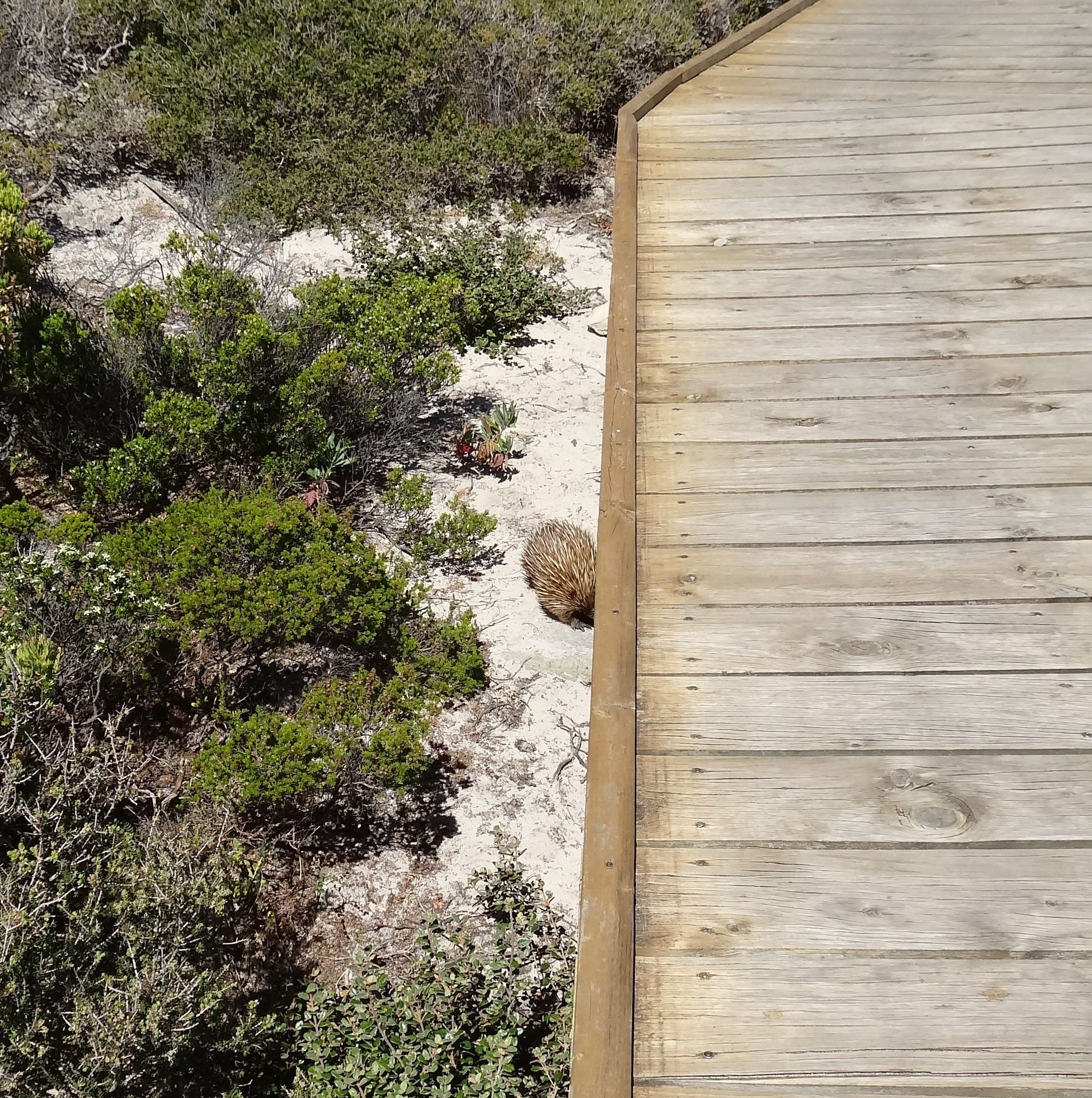 We were lucky enough to see the unusually shy echidna (sometimes called spiky anteaters) while walking on the board walk back from watching the sea-lions. Echidnas are still close to their prehistoric form with quills and a long pointed nose handy for breaking up termite mounds, their favorite food. They are native and only live in Australia.
