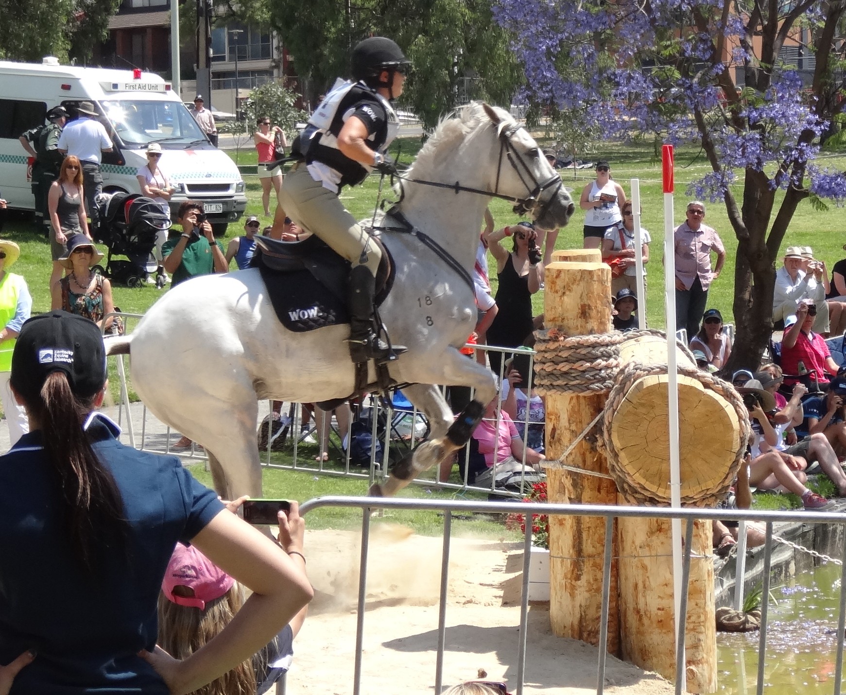 Adelaide hosts one of the world’s important international horse competitions. For eleven months riders compete in a series of dressage, cross-country and jumping finals held all over the world.  Among the finalists from this competition will be a few of the riders on the Olympic team. The three-day event in Adelaide covers dressage, cross-country racing and jumping for all of Australia.  We watched cross-country.