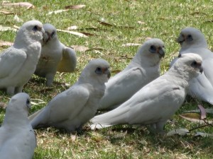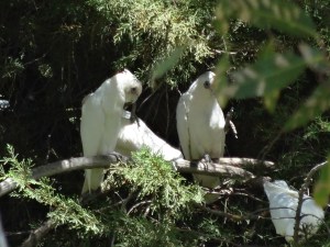There are a number of different kinds of birds on the river; kingfisher, snake bird, brown kite, black swans, egrets, pelican, ibis and more. We saw flocks of these white parrots called corollas. They take off and land and take off in waves, making a dramatic coloration against the eucalyptus trees that line the river.