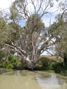 In their day, the river’s steamers used 1/2 ton of red gum wood for every kilometer traveled on the river. So there are few red gums left along the shores. This one is an example of the size of the old growth gum trees.