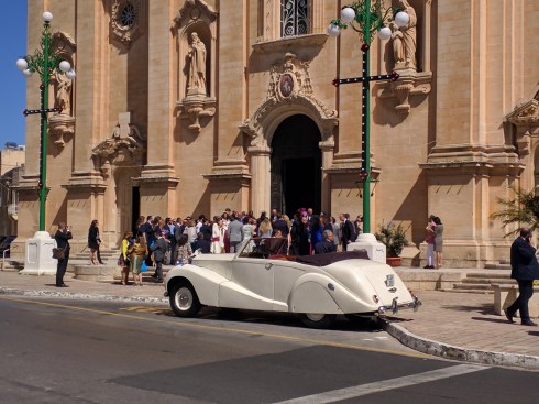 We were walking home on this sunny Sunday afternoon and passed by the Naxxar Parish Church. The bride and groom were just exiting the front doors of the church to be greeted by rose petals and champagne. The bride came through the doors raising her arms in victory and the guests gathered for hugs all around. I noticed many 1950s style mink stoles, some blond. Remember those? And very, very high patent leather stiletto heels. After much hugging, kissing and toasting on the church steps all were on their way, and so were we.