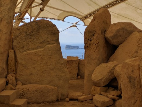 Large sculptures of corpulent figures were found here as the were at the Tarxien temples of a later period. The figures themselves are now found in the amazing National Museum of Archaeology in Valleta. But you can see the indentations where the feet of the figures nestled on stone pedestals at Hagar Qim.