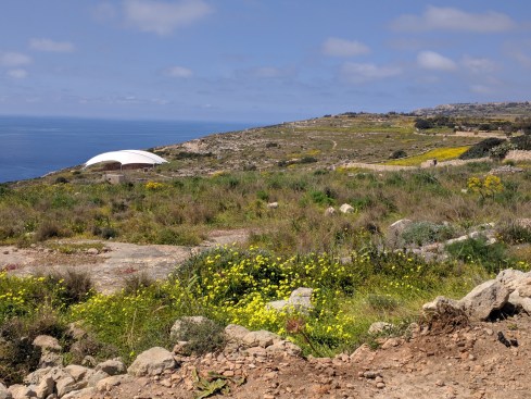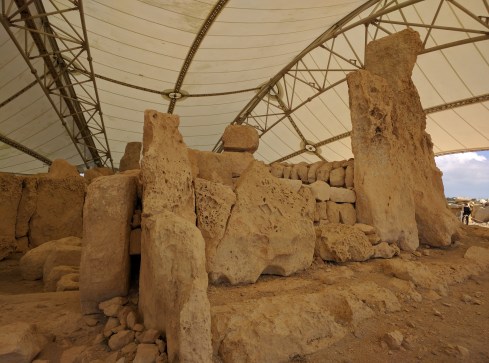 The sail-like white structures create anticipation as you descend to the Temples of Hagar Qim and Mnajdra. To the south is the sea, to the north a flat plain that looks over most of southern Malta.
