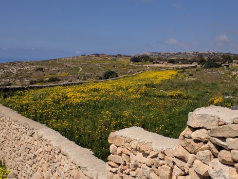 We visited the Hagar Qim Temples on a gloriously sunny day last week. The sunflowers cover the fields around the temple and make for a grand entry into the site of these astonishing Neolithic structures.