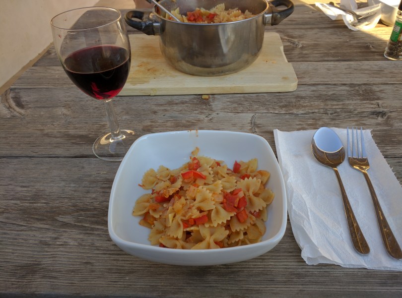 View from our roof terrace. Sliver of the Ionian Sea in the distance.