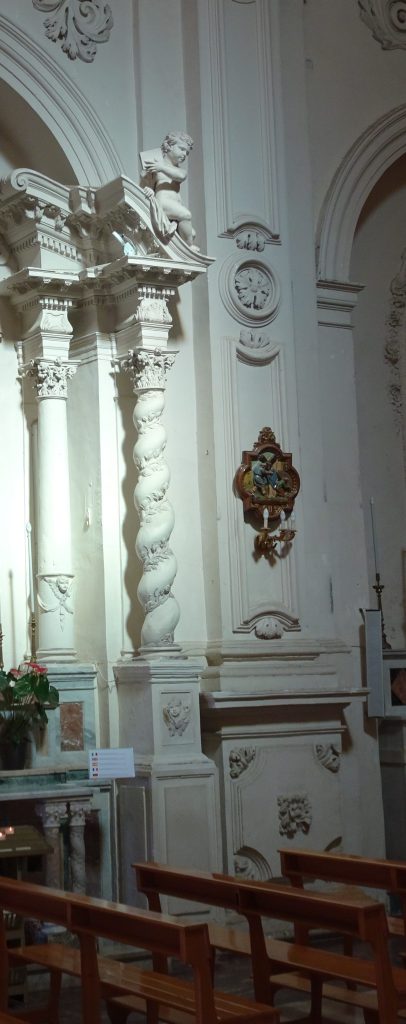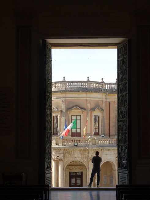 The Cathedral of San Nicolo is on the main street of Noto among other baroque churches and palazzi. But from the moment we entered, the feeling was different. Instead of the gilt, chandeliers and intense colors, this church of baroque architecture is completely white.