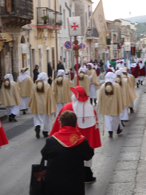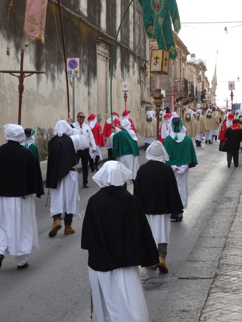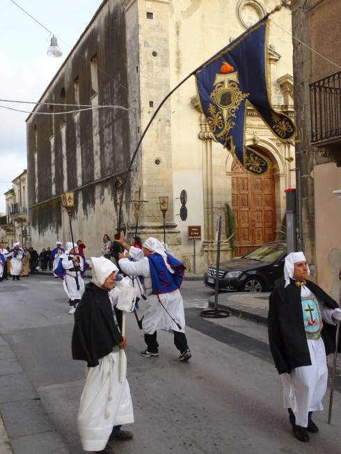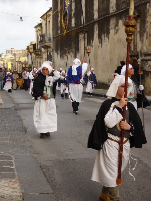All over the island of Sicily, Easter week is marked by slow-moving processions and displays of penitence and mourning. Every town, like Noto, has its own traditions. There are religious reenactments, processions with religious symbols and dress and public prayers.