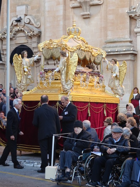 In Malta, a predominantly Catholic country, each village celebrates Easter in its own way. Dana and I had not seen a Passion Play before this. The reverence and dedication of the people of the village in this spiritual work was moving. Many of you know much more about this than we do. I will try to describe our experience on Good Friday evening and Easter morning in Naxxar.