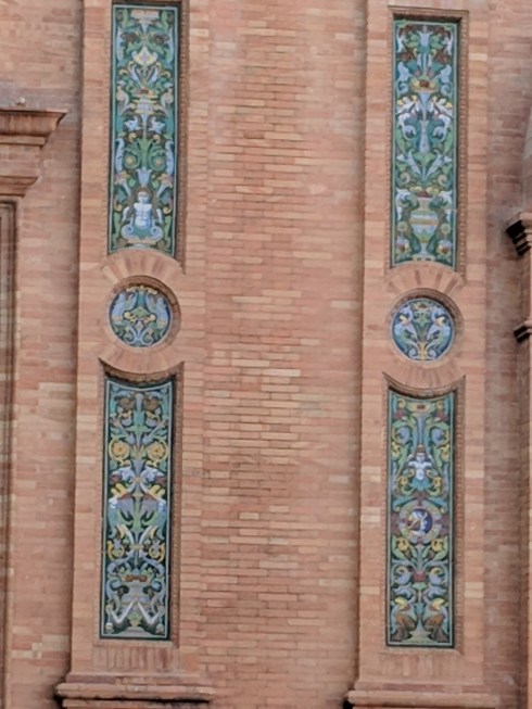 The Plaza de Espana is at the heart of Sevilla, geographically. It is the sight almost everyone visits first. I think this is because it is just so big. Like our Columbian Exposition in Chicago in 1893, Spain built the Plaza to celebrate their Ibero-American exposition in 1929. It is ornate and a bit fussy but thorough and conspicuously even-handed in the representation of every province of Spain.