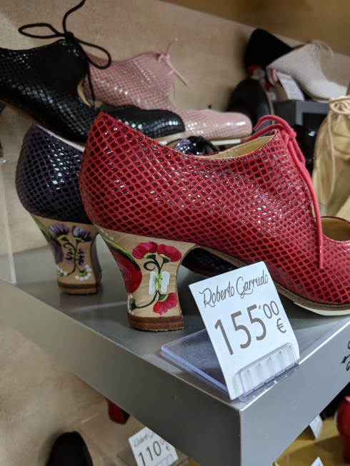 The dance tradition of flamenco permeates the air in Seville. We visited the Flamenco Dance Museum which sounds so much more romantic in Spanish, El Museo del Baile Flamenco. And we came away just beginning to understand the power of this art form. But I found my first visceral connection in a shoe store.