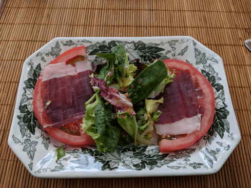 Jamón ibérico de recebo: ham from acorn, pasture and compound-fed Iberian pigs, thinly sliced, on its own or in a salad.