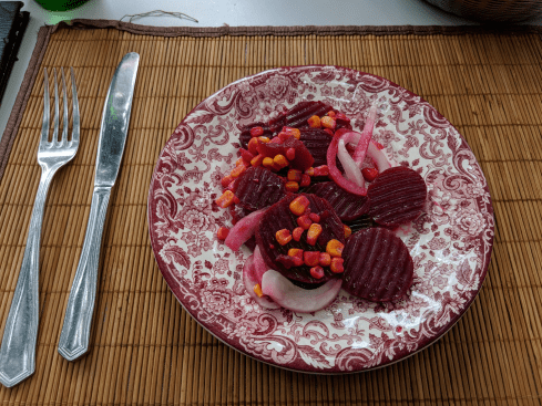 Remolacha, maiz y cebolla, sounds delicioso in Spanish.