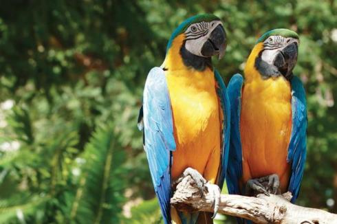 The next day the brothers entered to find the same meal. But this time while they were eating two brilliant macaws swooped into the cave. They circled the brothers, then landed, flapping their colorful wings. The brothers could see that these beautiful and brightly colored macaws were actually two women who had prepared the meals. The brothers fell in love.