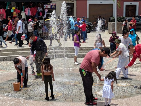 The parade ended on San Francisco Plaza. While local fireman sprayed the kids with foam and water canons, others played in the central fountain and some performers continued dancing.
