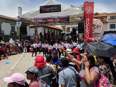 The temper of the spectators was exuberant and joyful as school bands and dancers marched from one end of Cuenca to the other.