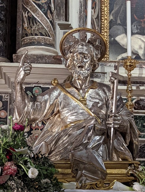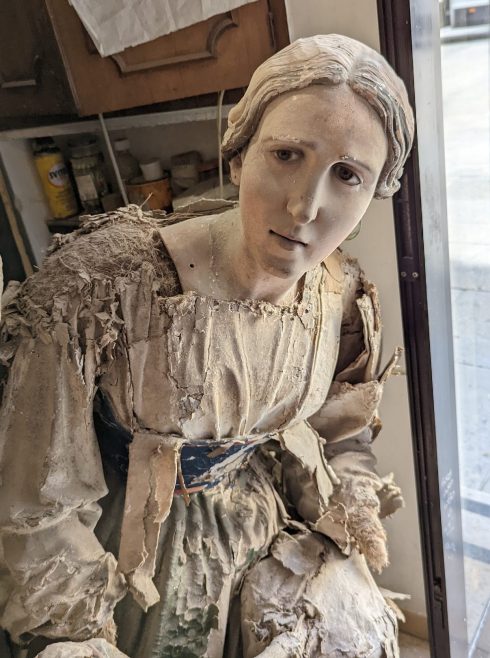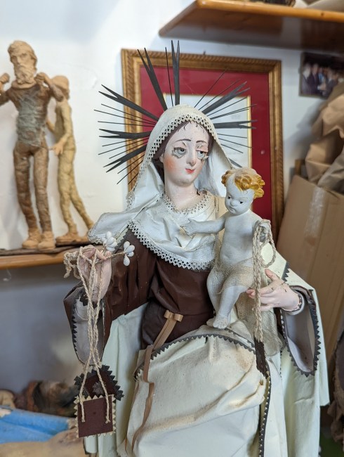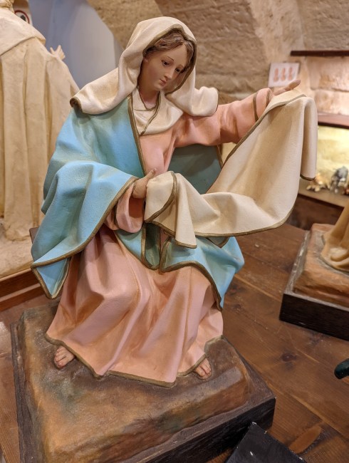 For the most part the artwork, especially religious artwork, is done on commission. But the workshops have an area where pieces that are for sale are displayed. We went on our own though workshops offer classes in papier mache. The Baroque churches of Lecce are filled with papier mache saints and many homes have religious art. It is interesting that we have not seen anything that looks as if it is created solely for tourists.