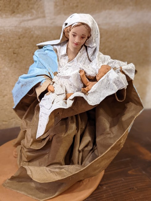 Some papier mache artists work on a larger and some on a smaller scale. Claudio Riso and his brothers, Giuseppe and Sandro follow the strict traditions of Salento in creation of their papier mache figures and scenes. The process of creation requires up to twenty-five different phases.