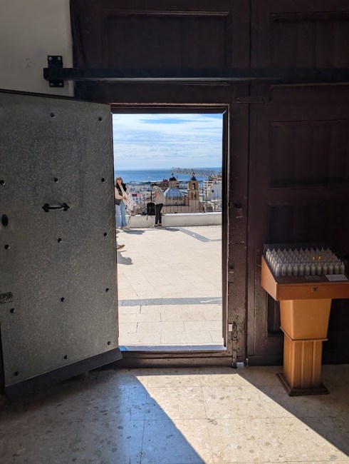When we arrived the chapel was closed. We explored the small plaza where it sits and looked out over the harbor. But just when we were about to walk away, some men refurbishing a paso (the mahogany platform to be used in the annual Easter procession in April) opened the doors. Except for a weekly Mass, being open to the public is a rare occurrence. We are so glad we lingered.
