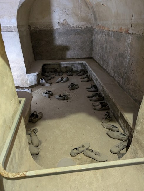 We visited two shelters. It was an extraordinary experience. We sat in the dark stone 8 foot by 10 foot chamber where 25 people sat, stood, ate and slept for the bombings that sometimes lasted for eight hours straight over the course of days. The elderly and children were given the bench squeezing in as many as possible.