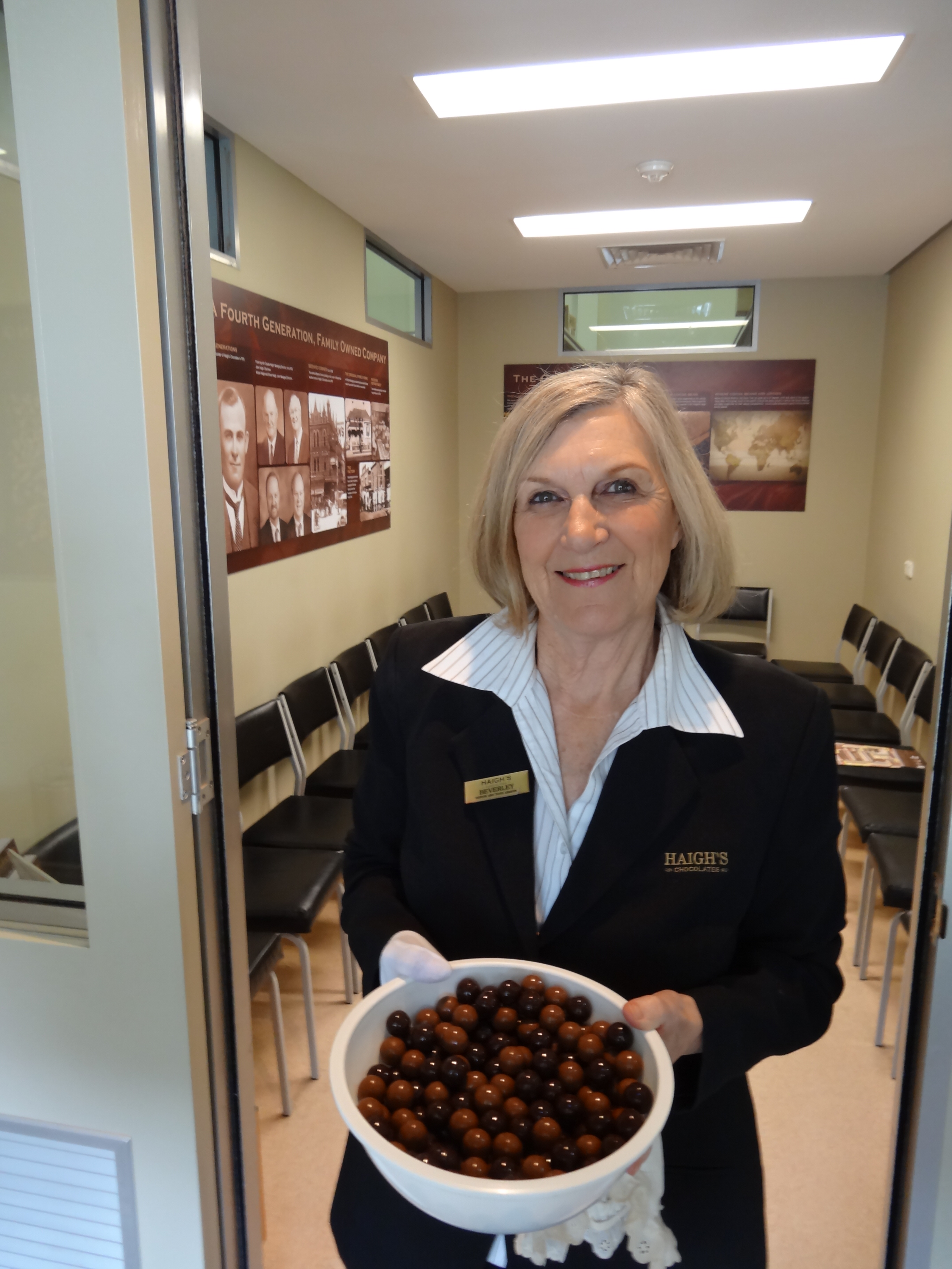 Beverly has been telling people about Haigh’s for 14 years. One of the women in the chocolate factory has worked there continuously since 1957. These are people who love and are proud of what they do.