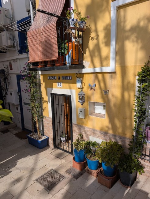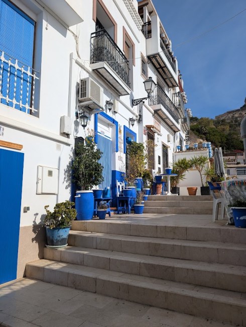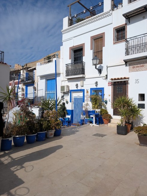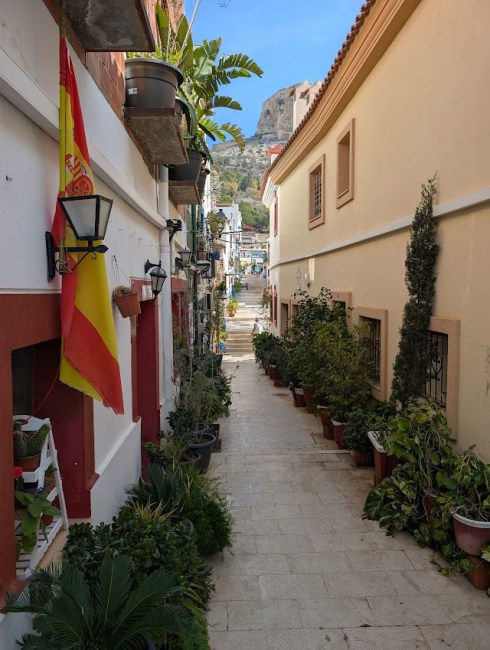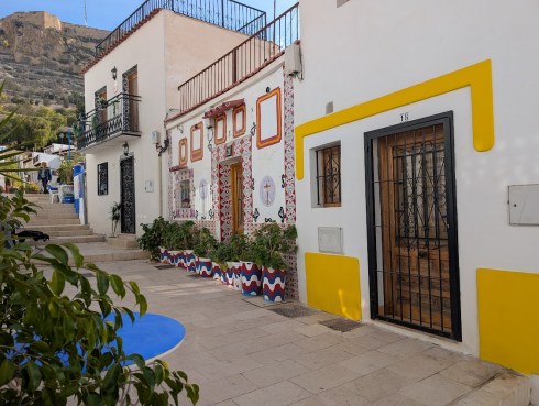 The Santa Cruz neighborhood is one of the oldest in Alicante. This enclave of labyrinthine streets sits half way up Mount Benacantil, the mountain that looms over Alicante looking down at the harbor. The narrow alleyways are lined with stairs and long walkways with colorful houses built on either side.
