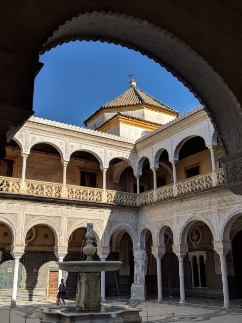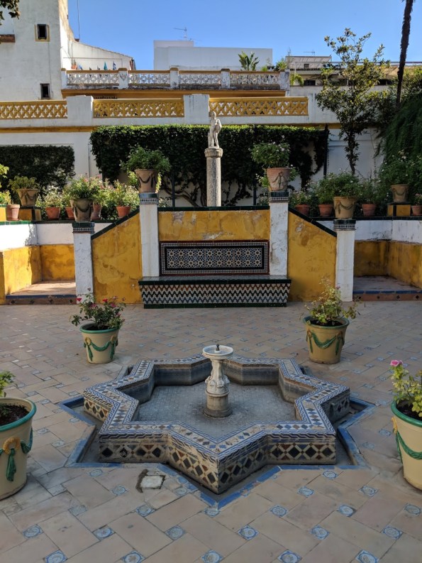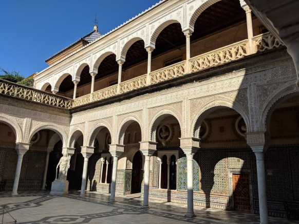 Casa de Pilatos is the quintessential Andalusian palace combining Italian Renaissance with Spanish Mudejar style and design. Mudejar architecture is native and unique to southern Spain with roots in the Islamic culture. Azueljo tiled gardens, horseshoe arches and flowing water show the Moorish influences in this palace and the complex cultural history of Sevilla.
