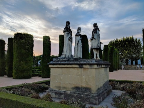 The original mudejar garden in Cordoba was changed when Christian kings conquered the Moors to rule Spain. In the 15th century Isabella and Ferdinand made Cordoba their primary residence. Sculptures exalting both monarchs and their welcoming of Columbus back from the New World were added to the earlier Islamic garden.