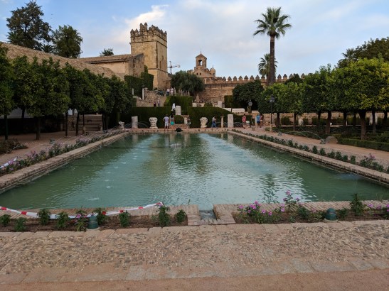 We saw the Cordoba garden at dusk. Sitting among the pools in the cooling evening and twilight restored us.