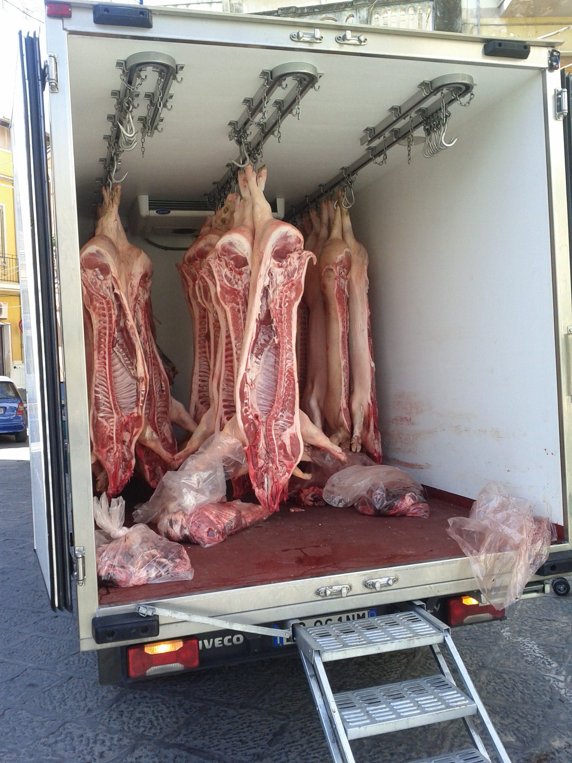 Every delivery snarls up the street leading to many blown horns. Sicilians love to blow their horns at the slightest provocation or sometimes for no reason at all. In this case the delivery is quite a long process that involves extensive conversation between the butcher and the delivery driver.