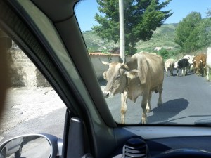 Other times the beef may be on the hoof. We came upon this herd of cows while navigating a road with many hairpin turns in the mountains. The cows were unimpressed with our SmartCar and ambled on by at a local pace. Each had a bell and this traffic noise was quite magical.